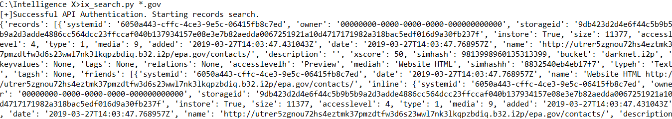 The first script “ix_search.py” looks for any selectors, and returns all results that contain the selector. Each result has a unique “systemid” that can be used to query the actual data (note that the source data could be anything from a HTML document, a text file, a Word document, a PDF, etc.).