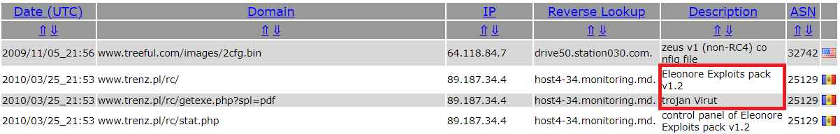 Historically back in March 2010, it hosted the “Eleonore Exploits pack v1.2” [2]. Information about Eleonore is available here.