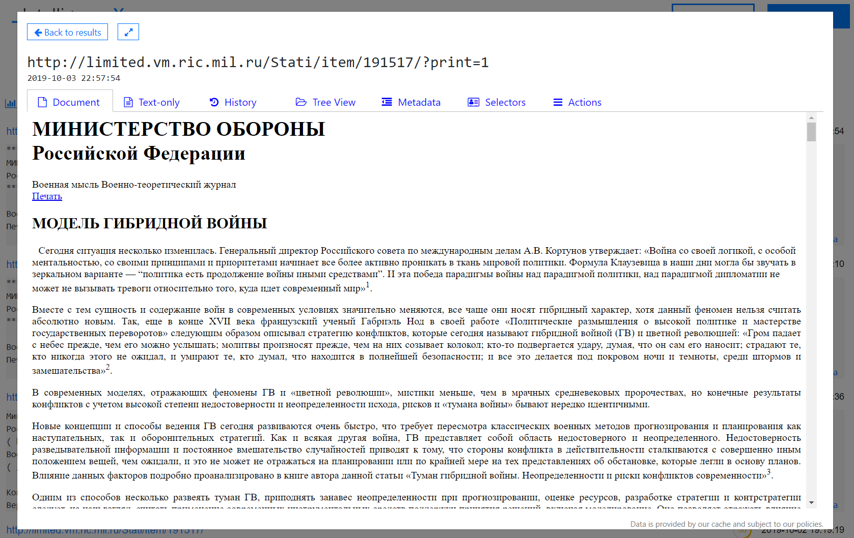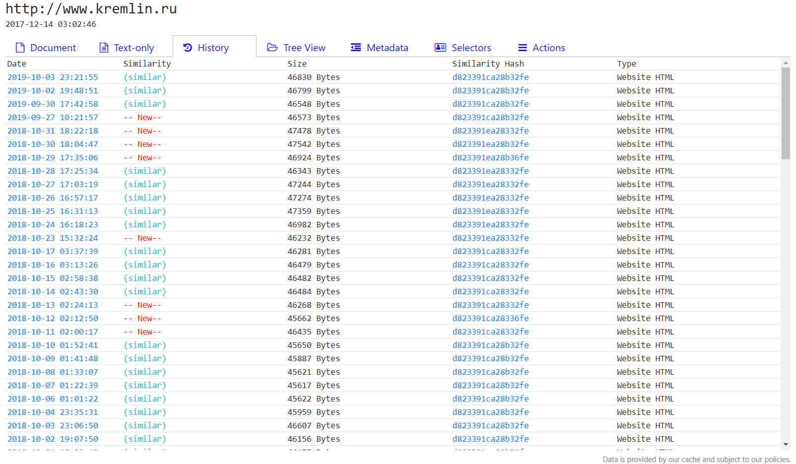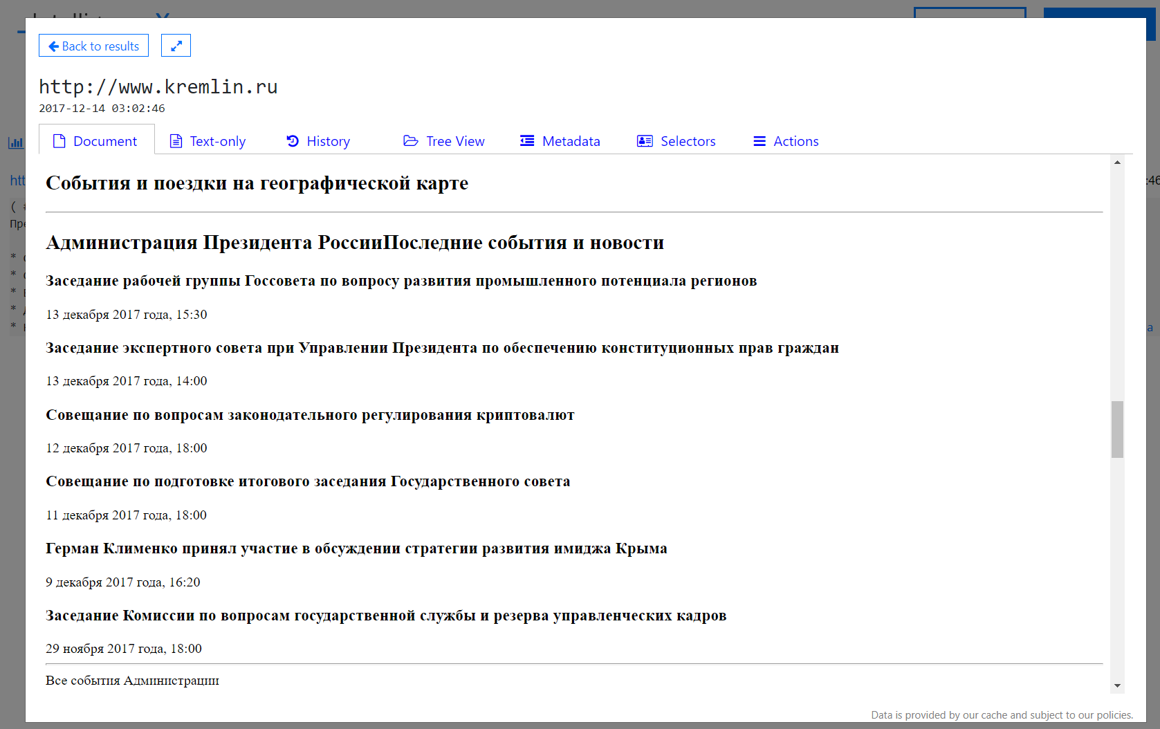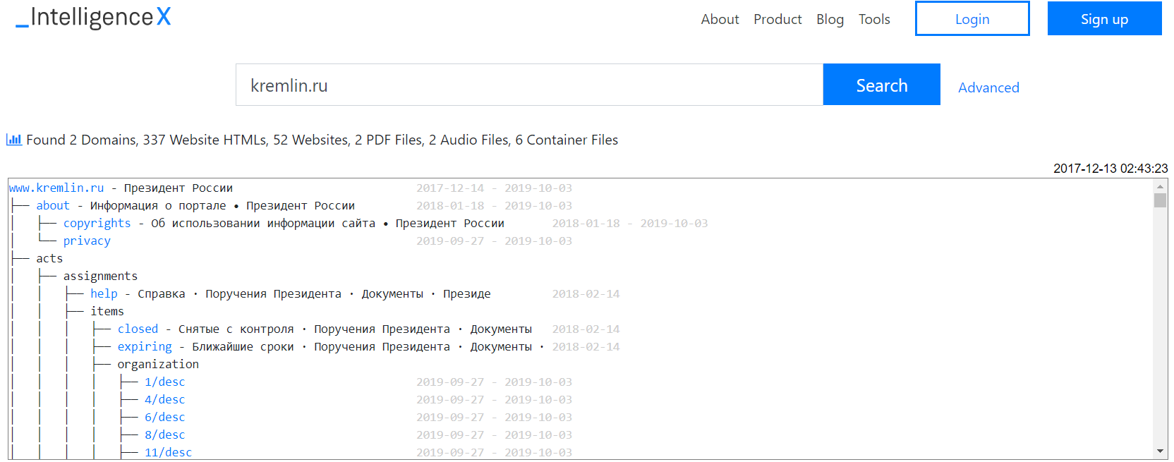 The historical data goes back until December 2017. That means you can go back in time and get the content of Russian governmental websites up to that point using Intelligence X.