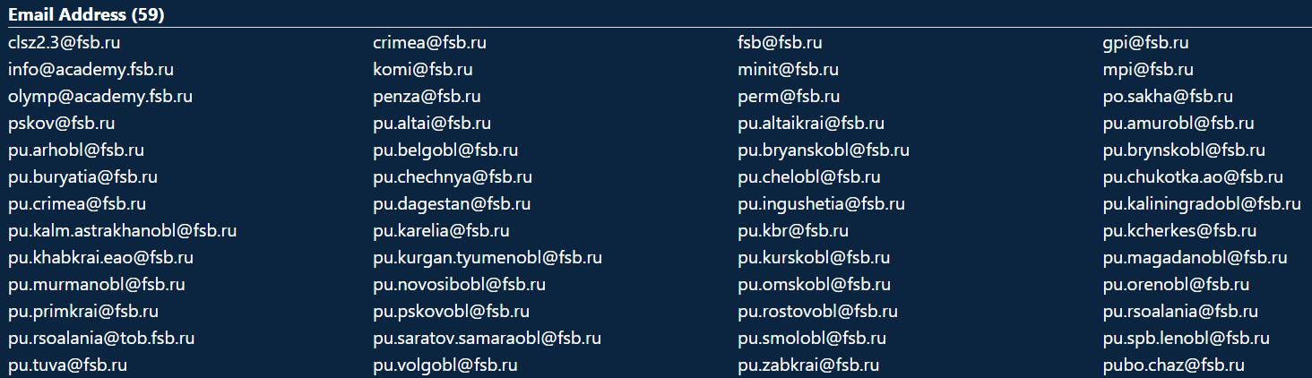Note: There are even more fsb.ru email addresses known if you search all data across Intelligence X.